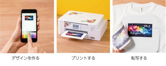 ポリエステル加工がされている素材への転写が可能で、デザインを昇華転写紙に印刷し、ヒートプレス機【※1】で転写することで作成できる。Tシャツ、トートバッグ、マグカップなど既製品にも利用できるので、学校行事でのオリジナルTシャツ製作やオリジナルデザインでのグッズ販売などさまざまなユーザーのニーズをかなえるプリンターだ。