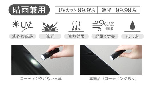 ・ブラックコーティング裏地で、日差しや照り返しを防止