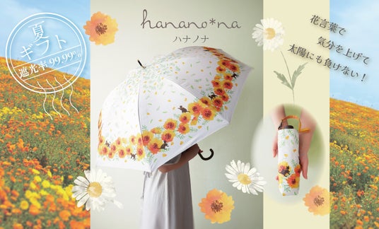 ~真夏のお出かけにも安心~夏のギフトにおすすめな、まるで花束のように華やかなデザインに、晴雨兼用・UVカット・遮熱・遮光といった夏にうれしい機能を備えた「hananona(ハナノナ)」。