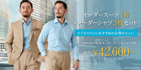 本格オーダースーツ+オーダーシャツ3枚のセットプランも!