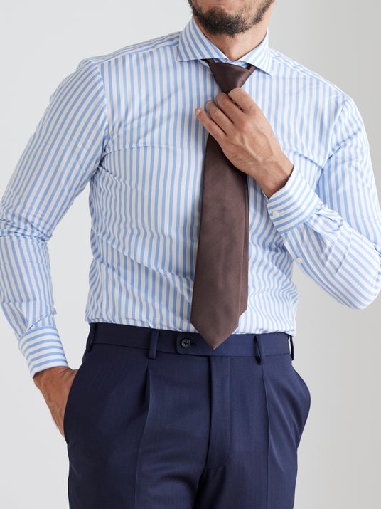 GINZAグローバルスタイルのオーダーシャツは既製品と違い、タイドアップした時の首への“締め付け”が無く、快適な立体的襟元を実現します。また体型に合わせて腕回り、ウエスト回り、アームホールのフィット感を自由に変えられるので、スマートなシルエットで心地よい着心地をご体験いただけます。ぜひ、既製シャツでは味わえない、高級オーダーメイドシャツの着心地をお試しください。