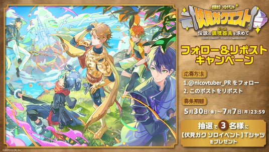 さらに、記念すべき初のソロイベントをさらに盛り上げるべく、「会場突撃レポート」「最速感想放送」の配信や、ニコニコVTuber公式X(@nicovtuber_PR)にて抽選で3名に「【伏見ガク ソロイベント】Tシャツ」が当たるフォロー&リポストキャンペーン(応募期間:5月30日~7月7日)を実施します。