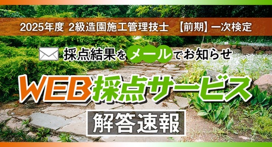 資格取得支援スクールの日建学院を運営する株式会社建築資料研究社(所在地:東京都豊島区、代表取締役社長:馬場栄一)は、2025年6月1日(日)に実施される2025年度(令和7年度)2級造園施工管理技士 前期一次検定において、無料で採点結果をお知らせする「WEB採点サービス」を実施いたします。採点結果は2025年6月2日(月)14:00頃よりメールにて配信予定です。