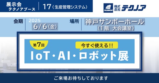 株式会社テクノア(本社:岐阜県岐阜市、代表取締役:山崎 耕治)は、6/6に神戸サンボーホールで開催される「第7回 今すぐ使える!! IoT・AI・ロボット展」に出展いたします。