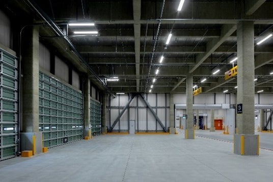 スロープ方式を採用し、1・2階倉庫は3.0t/平方メートル の重量に対応でき、重量物の保管が可能です。また2階トラックバースは低床バースを採用し、フォークリフトが自由にトラックバースと倉庫内を行き来できるため、重量物の取り扱いにおける作業効率が向上します。