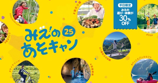 三重県の体験型旅行プログラム利用促進を目的とした県内の遊び体験が平日限定30%OFFで利用できる「みえのあそキャン25 」