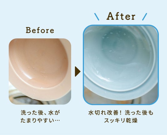 「SUKUSUKU」第2弾で使われる原料は、厚生労働省の食品衛生法に適合。子どもの成長に影響を与える成分が溶出することなく、電子レンジも安心して使うことができます。また、器の返しをなだらかにしたことで、洗浄後の器の中に水が溜まりにくくなり、食洗機で洗った後も乾きやすい設計となっています。