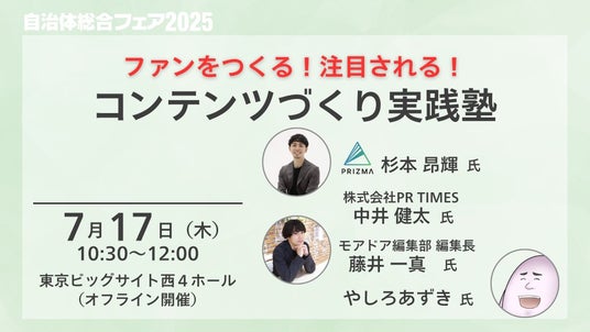 一般社団法人日本経営協会(東京都渋谷区、会長:高原 豪久)は、自治体・行政に関する総合展示会「自治体総合フェア2025」(7月16~18日 会場:東京ビッグサイト)の事前来場者登録とセミナー申込を開始いたしました。