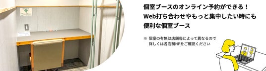 - 1名専用ブース(25室):リモート会議や面接、集中したい作業や自習に最適