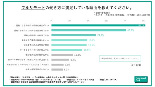 ■フルリモート勤務者の満足理由は「通勤がなくなること」で感じる3つの恩恵