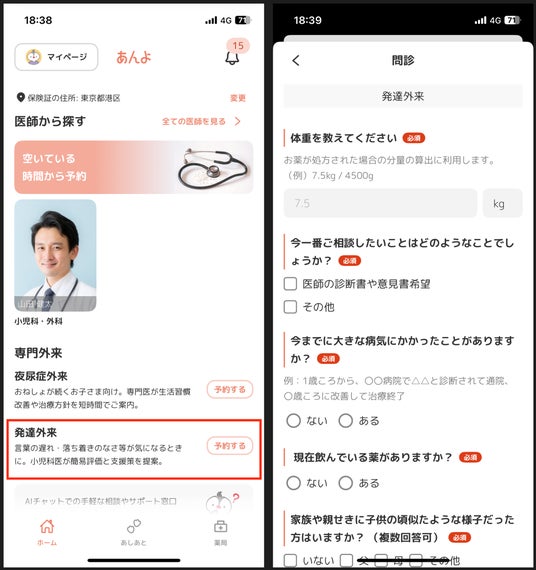 発達外来は、発達障害に特化した専用問診と診療フローを備えた新しい予約枠です。
