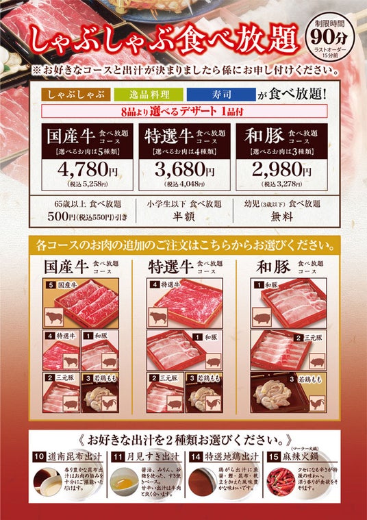 ◎食べ放題コースはお出汁は4種類ご用意しております。(1コースで2種類の出汁をお選びください)