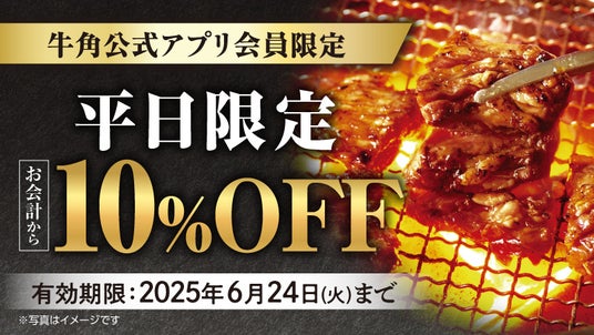 ※牛角公式アプリ会員限定のクーポンとなります。お会計時にアプリのクーポン画面をご提示ください。