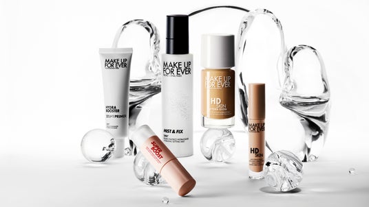 左から:ステップ1プライマー ハイドラブースター ¥5,390/スーパーブースト リップグロス ¥4,180/ミスト&フィックス¥4,180/HDスキン ハイドラ グロウ ファンデーション ¥6,490/HDスキン コンシーラー ¥4,620(全て税込)