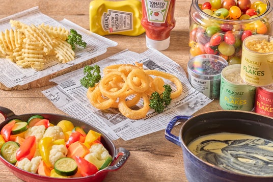 4種のクリスタルソルトで食べるウォームアップベジタブル(爽やかレモンソルト/薫るローズマリーソルト/ピリッとレッドチリソルト/ヘルシー&ビューティー竹炭ソルト) /フライドオニオン&マンダリンカットポテト(フレイバー&ソース バター醤油 / ケイジャンスパイス / トマトケチャップ) /竹炭マッシュポテト デトックスエフェクト