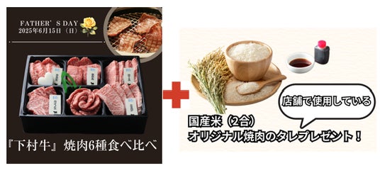 ◆【父の日限定】下村牛焼肉6種食べ比べ+国産米(2合)+オリジナル焼肉のタレ付き