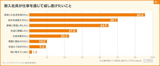 新入社員が仕事を通して成し遂げたいことについて、「安定した生活を送りたい」と考えている割合が過去最高である一方、「自分を成長させたい」と考えている割合は過去最低となりました。