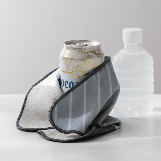 素材は、表と裏の生地がくっつく特殊素材を採用しており、飲み物をくるむだけでしっかり固定。