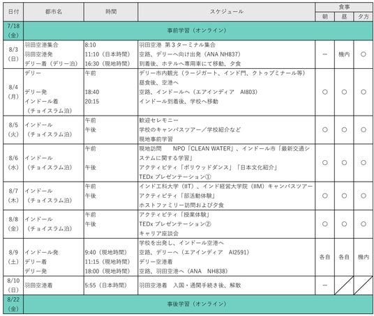 ・全行程に河合塾スタッフ1名(男性)と、8/3現地到着以降、8/9インドール出発までインド在住の日本人女性1名同行。