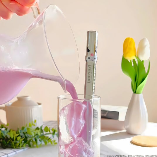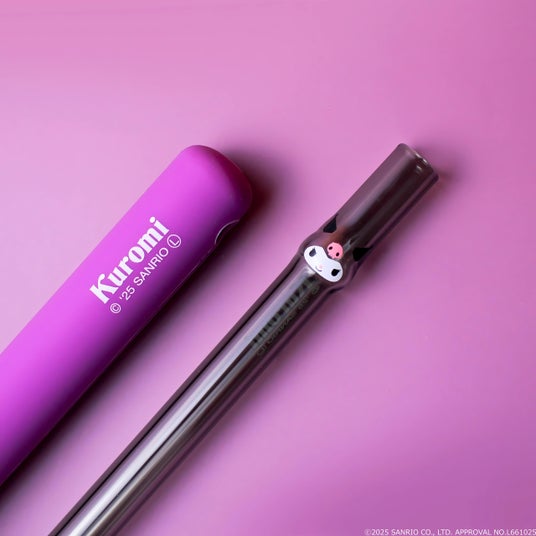 ファンから要望の多かった、株式会社サンリオの人気キャラクター「クロミ」のガラス製マイストローがついに登場します。ストローはクロミのイメージに合わせ、黒いガラス素材を使用し、クロミらしい世界観を表現しました。そして本製品では、冷たい温度に反応して色が変わる冷感リアクションシールを採用しており、冷たいドリンクを飲むと、スタンダードタイプではクロミの頬に淡いピンクのチークが浮かび上がり、ウィンクタイプではウィンクした側の目元に愛らしいピンクのハートが浮かび上がります。