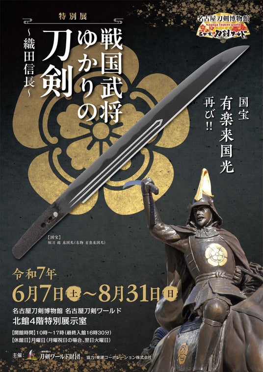 当館では、2025年6月7日(土)~8月31日(日)の期間中、特別展「戦国武将ゆかりの刀剣~織田信長~」を開催します。戦国武将の中でも特に知名度が高く根強い人気を誇る武将・織田信長。本展では織田家や信長の出身地である尾張国をテーマに、国宝「名物 有楽来国光」をはじめとした刀剣を一堂に展示いたします。