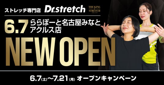 世界250店舗以上で独自技術「コアバランスストレッチ」を提供するストレッチ専門店『Dr.stretch』(株式会社nobitel、本社:東京都新宿区、代表取締役:黒川 将大)は、6月にららぽーと名古屋みなとアクルス店をオープンいたします。