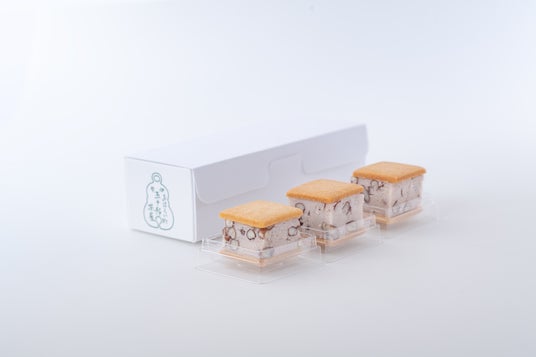 赤福が手がける五十鈴茶屋の商品「あずきバターサンド」は、北海道産小豆と国産バターで仕上げたバタークリームを、三重県産小麦「あやひかり」を使ったサブレではさみました。ラム酒の豊かな香りとあずきの食感をお楽しみください。
