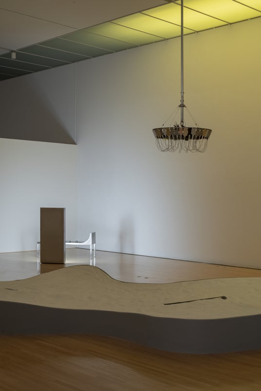 国内屈指のコレクションとされる戦後イタリア美術アルテ・ポーヴェラの作品や戦後ドイツ美術をはじめに展示室1で紹介し、展示室2で、同時代フランスの作家、ダニエル・ビュレンのインスタレーション作品「ファクシミリより場所へ」を22年ぶりに再設置します。さらに展示室3では、愛知を拠点、あるいは活動の出発点とした作家たちを取り上げ、展示室4では、令和6年度に新収蔵した田村友一郎「TiOS」をこの部屋にあわせて再展示し、展示室5では当館開館初期に重点的に収集されたモダン・デザインのコレクションを紹介します。