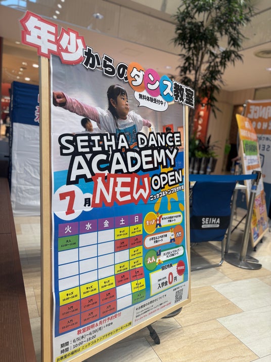 株式会社セイハダンスアカデミー(福岡県福岡市,代表取締役:坂口 正美,以下セイハダンスアカデミー)は、千葉県市川市に2025年7月「幼児からのダンス教室 セイハダンスアカデミーニッケコルトンプラザ教室」が開校いたします。ショッピングセンター内だから雨の日の送迎も安心。土日もレッスン開講&振替対応で忙しいご家庭にもぴったり。新しい教室で、楽しくダンスデビューしませんか?