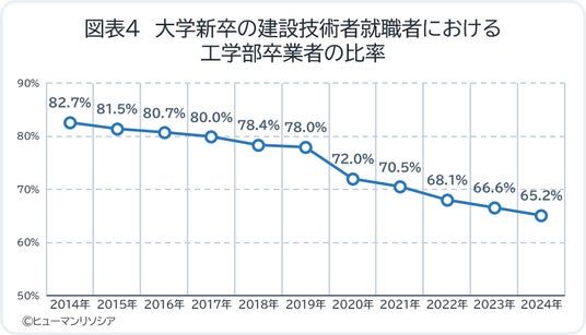総合人材サービス会社で、建設業向けの人材派遣・海外エンジニア派遣・人材紹介事業を展開するヒューマンリソシア株式会社(本社:東京都新宿区、代表取締役:高橋 哲雄、以下「当社」)は、建設業の人材動向について、統計データベースなどを基に独自集計し、レポートとして発表しています。このたび、建設技術者の重要な人材供給源である大学等の新卒就職者の動向について、最新の2024年実績をもとに分析した結果を、レポートとして発表します。