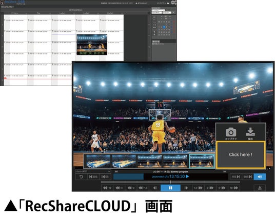 例えば全国の会場からの映像ストリームをRecShareCLOUDに打ち上げて集約し、収録/再生/切出しを行うような、大規模なスポーツ大会の素材バンクとして簡単に利用開始できます。