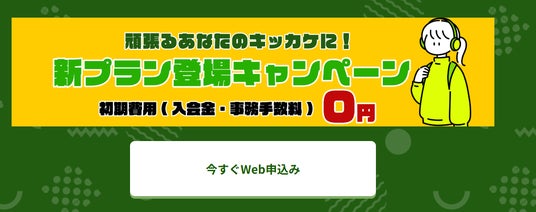 新プランの開始を記念し、通常発生する登録初期費用をすべて無料とするキャンペーンを実施します。▼ キャンペーン概要