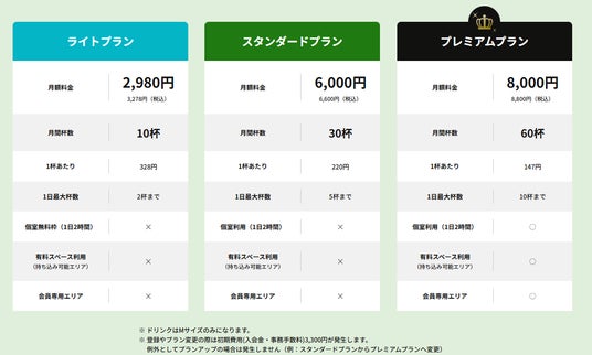 月60杯まで利用可能+個室、有料持ち込みスペース、会員専用エリアカフェを利用可能!