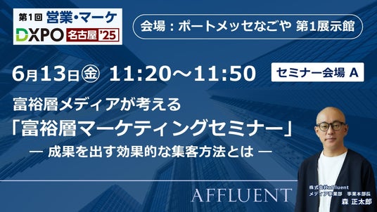 富裕層マーケティングに特化した株式会社affluentが、中部エリア最大級のマーケティング総合展示会に出展!
