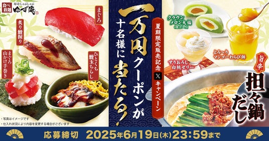 株式会社物語コーポレーション(本社:愛知県豊橋市/代表取締役社長:加藤 央之)が全国106店舗展開する『寿司・しゃぶしゃぶ ゆず庵』(以下、ゆず庵)は、夏期間限定メニューの販売を記念して、本日より、公式X(旧Twitter)にてゆず庵アプリクーポン10,000円分が当たるプレゼントキャンペーンを開催いたします。