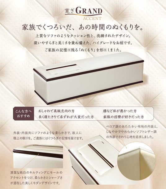 上質なソファのような素材のお棺 ~寛ぎGRAND~