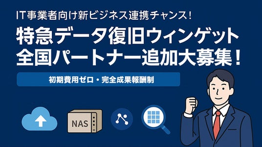 株式会社リプラスが展開する【特急データ復旧ウィンゲット】では、このたび全国のIT関連事業者様を対象に、データ復旧にとどまらないITソリューション連携パートナーの募集を本格スタートいたしました