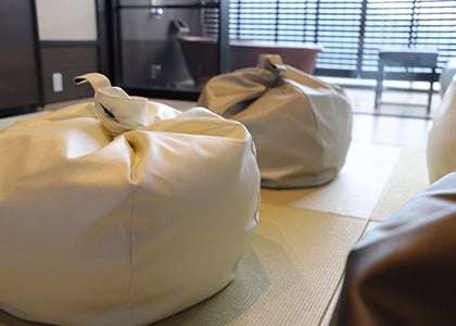 100種類以上の合皮レザーから選ぶことができ、施設の世界観やブランドイメージに合わせて、空間にピッタリな商品を1台からオーダーいただけます。合皮レザーのビーズクッションは、撥水加工が施されているため、汚れてもサッと拭くだけで清潔を保てます。また形が崩れにくく、メンテナンスの手間を最小限に抑えられるのは、施設利用におけるメリットです。
