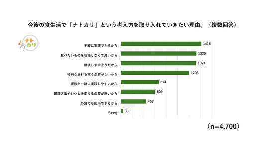 ●減塩“苦戦層”に朗報?!「ナトカリ」を今後、食生活に取り入れたい人は約77%。理由は「手軽に実践できる」がトップ。