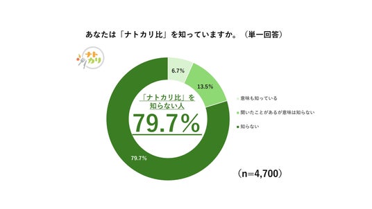 一方で、「ナトカリ比」の認知度を調査したところ、「知らない」と回答した人は全体の79.7%で、一方で「意味も知っている人」は6.7%とかなり少なく、認知度は低い結果となりました。