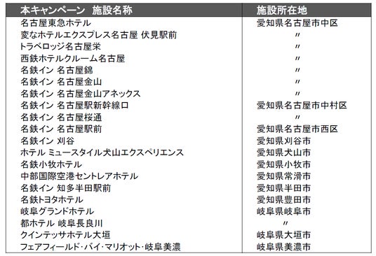 「ツギツギ」では通常、1泊あたり10ポイント(~約12,000円相当)を消化しますが、本キャンペーン※3では、名鉄グループが運営するホテルをはじめ“なごや圏”の対象施設(全20施設)に限り5ポイントで宿泊が可能となり、1名1泊あたり実質