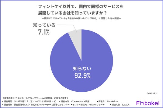 「フィントケイ以外で、国内で同様のサービスを展開している会社」について尋ねたところ、約9割が『知らない(92.9%)』と回答しました。