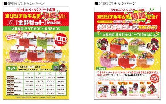 発売の前後には『オリジナルキムチ5種セットプレゼント』キャンペーン及び、『らこぽん&みらいちゃんオリジナルグッズプレゼント』キャンペーンを実施する他、順次、YouTubeチャンネルなどでも楽しい企画を計画しています。