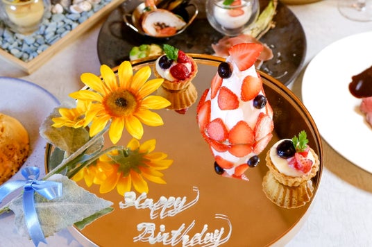 記念日コースでは季節のフラワーデザートプレートor苺のミニタワーケーキを好みに合わせて選ぶことが可能。
