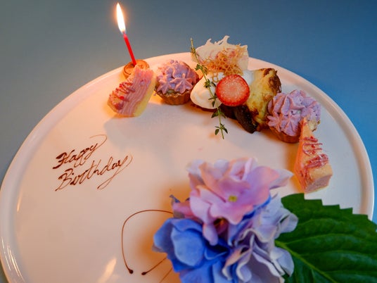 ディナータイムで人気の季節のフラワーデザートプレートが、旬の食材を使用したアニバーサリーコースとして3種類が新登場。