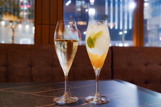 記念日コースの特典として、全コース乾杯としてオリジナルカクテル、スパークリングワイン付き。