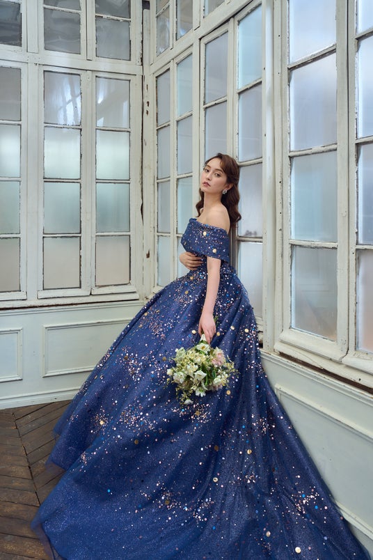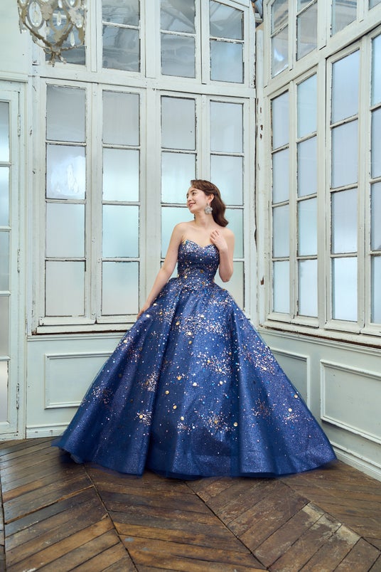 特にスパンコール素材は、ザ・ハニーオリジナルとして生地から作り上げています。また、一つのドレスでさまざまな着こなしを楽しんでいただけるように、袖の取り外しが可能なデザインや、スパンコールにレースを重ねることで、光の角度によって異なる表情が生まれるような立体感を持たせています。