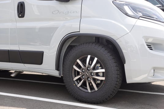 ※18インチタイヤを装着する場合、車幅よりタイヤがはみ出るためオーバーフェンダー取付などタイヤを車幅内に収める加工が必要となります。また、車幅が2cm以上変更になるため構造変更が必要です。詳しくはお問合せください。また、日本正規DUCATO(2025.4販売~series2[MY24])には現状、18インチタイヤの取付が不可となりますのでご了承ください。