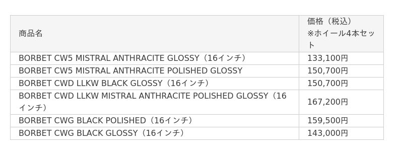 ※価格は全てタイヤ&ホイール4本セットの価格です。