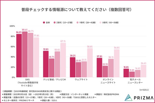 情報源は「SNS」が圧倒的、X世代はテレビやニュースサイトを重視